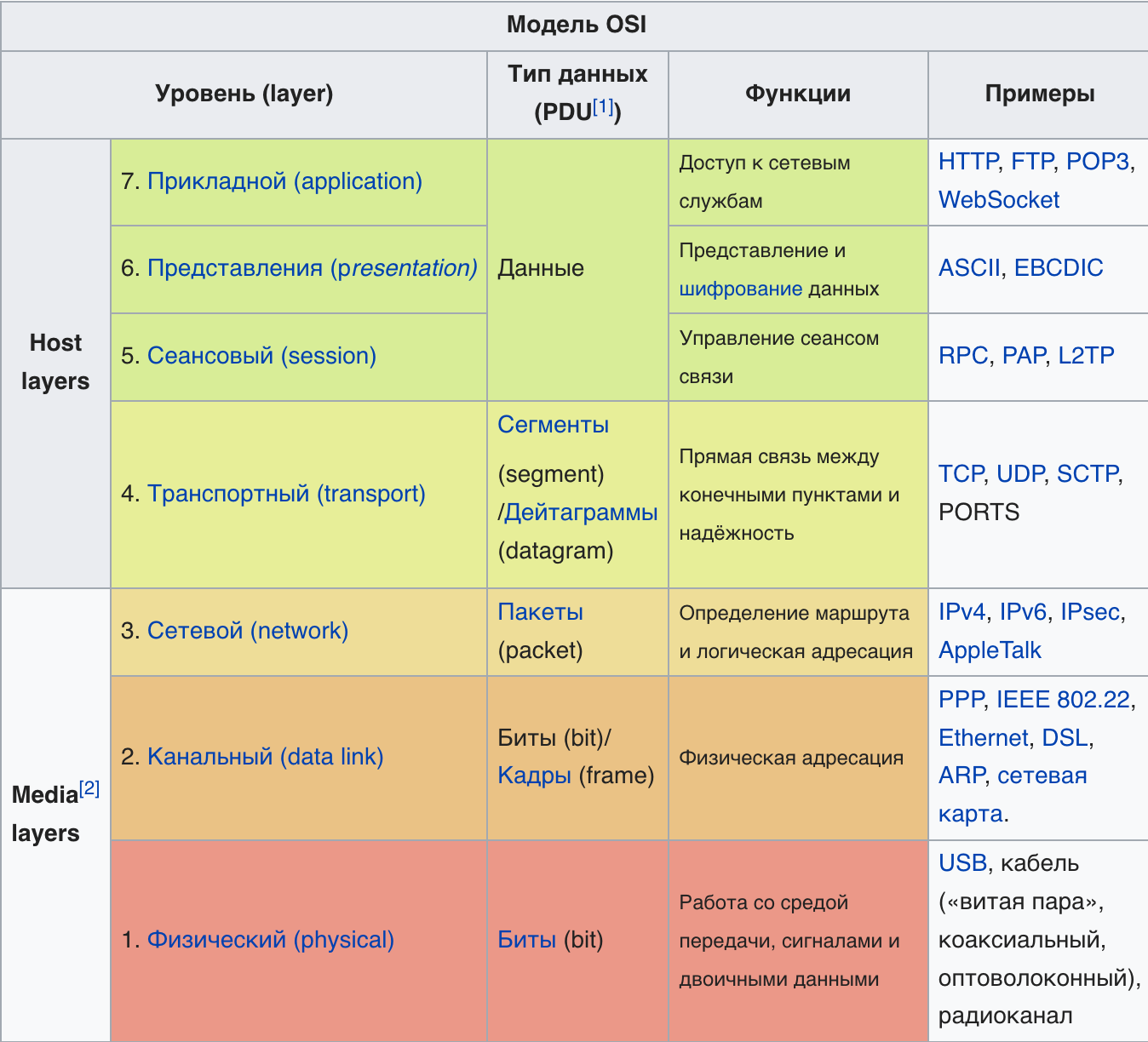 Я не могу пропустить в повествовании модель OSI, но описывать детально мы ее не будм, достаточно будет посмотреть на картинку.