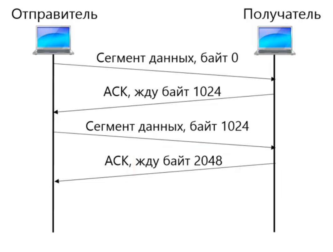 Протокол предоставляет нам гарантированную доставку пакета получателю. Сам протокол нельзя назвать простым и его описание может занять много времени. Но я попробую это сделать устно использую следующие изображения: