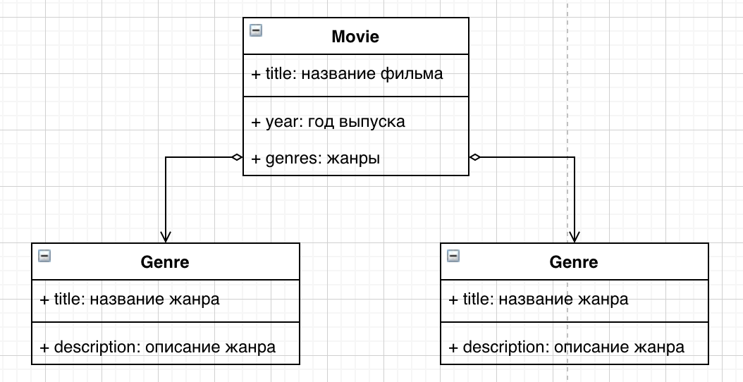Категории товаров агрегируют товары, а фильм агрегирует жанры к которым он принадлежитю.