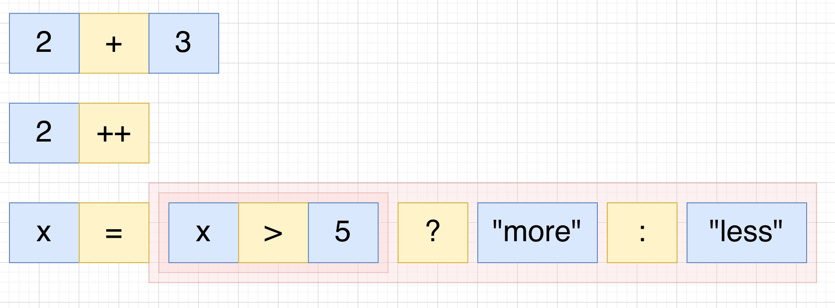 - Бинарные: когда с оператором используется два операнда4 + 5